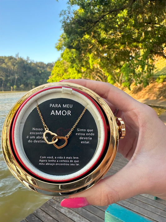 Caja con Rosa Eterna & Collar Corazones entrelazados 💕