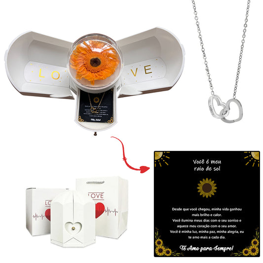 Box with Eternal Sunflower & Personalized Heart Necklace