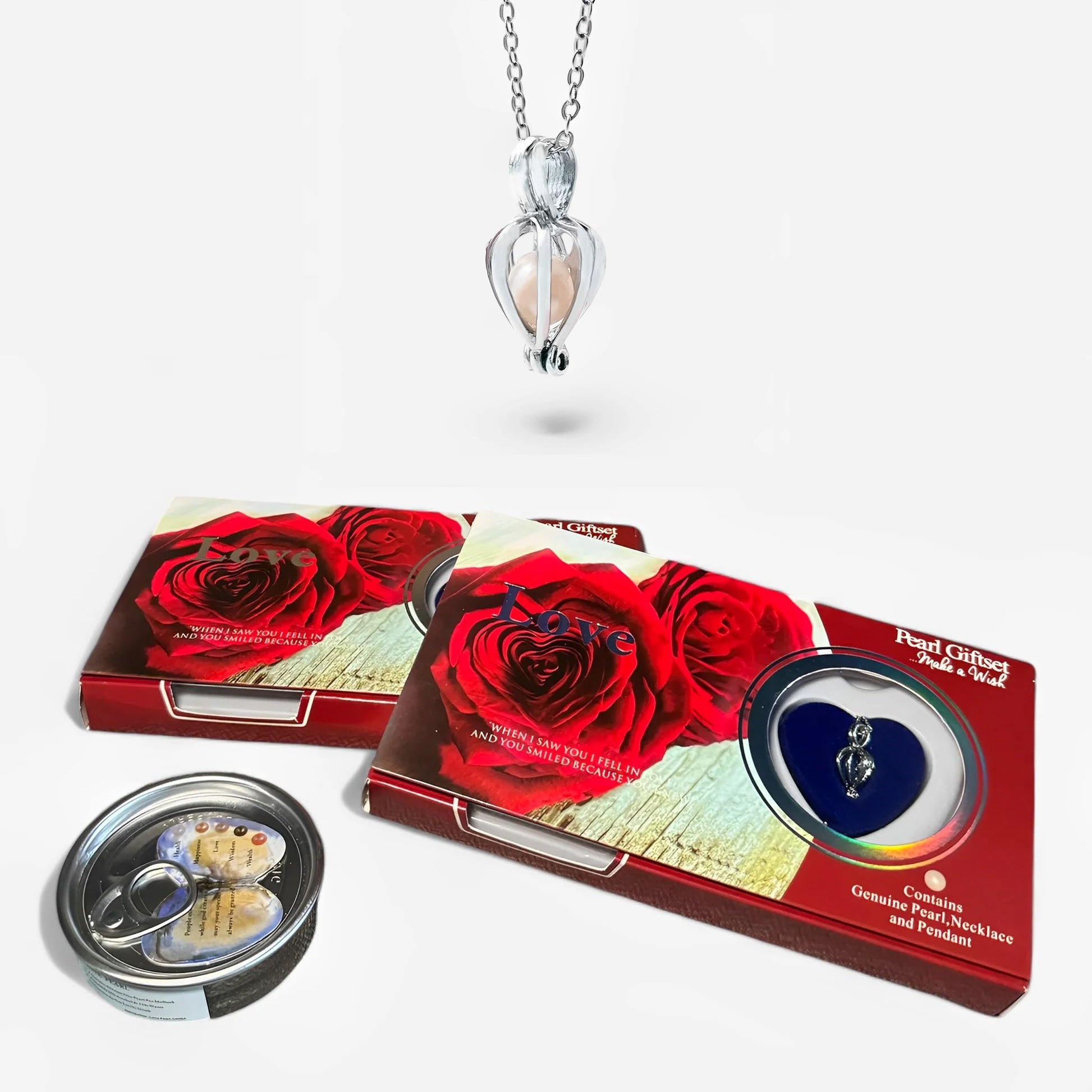 Each pendant comes with a real oyster that you will open yourself to discover a genuine pearl , a symbol of purity, luck and natural beauty.