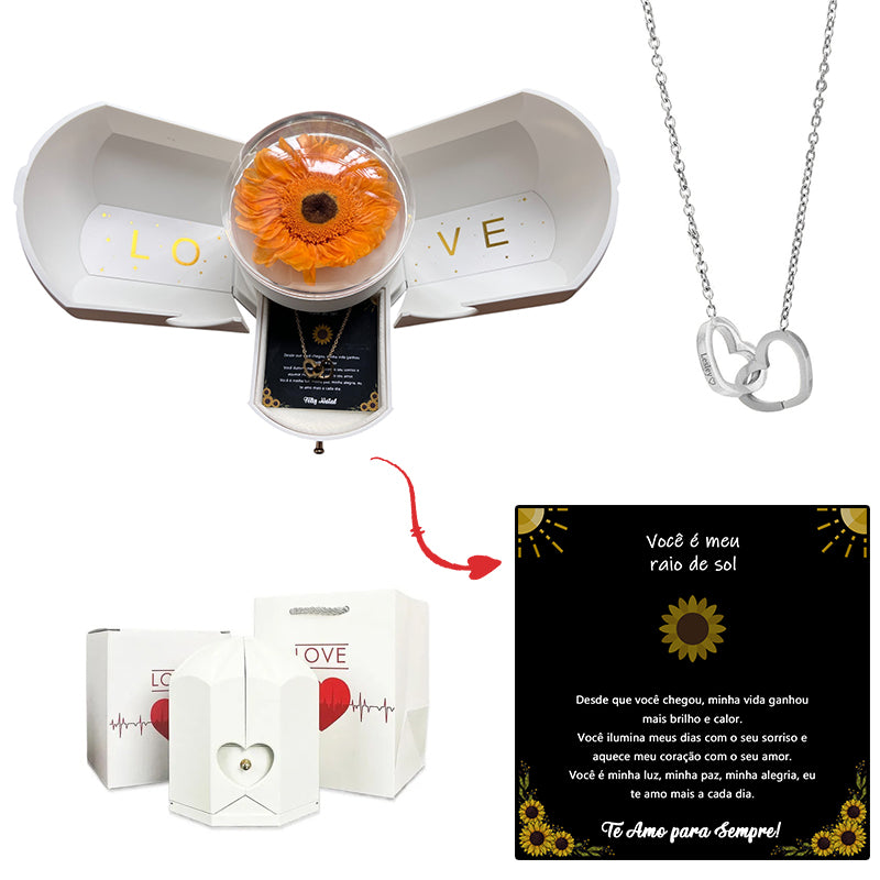Caja con Girasol Eterno & Collar Corazón Personalizado