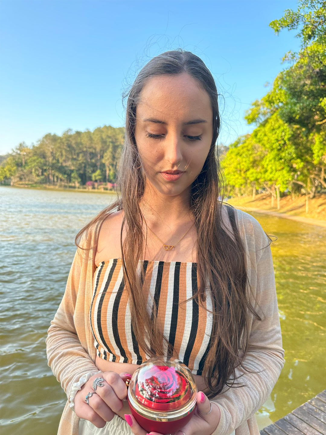 Esta rosa eterna simboliza un amor que nunca se desvanece y guarda en su interior una sorpresa mágica.
